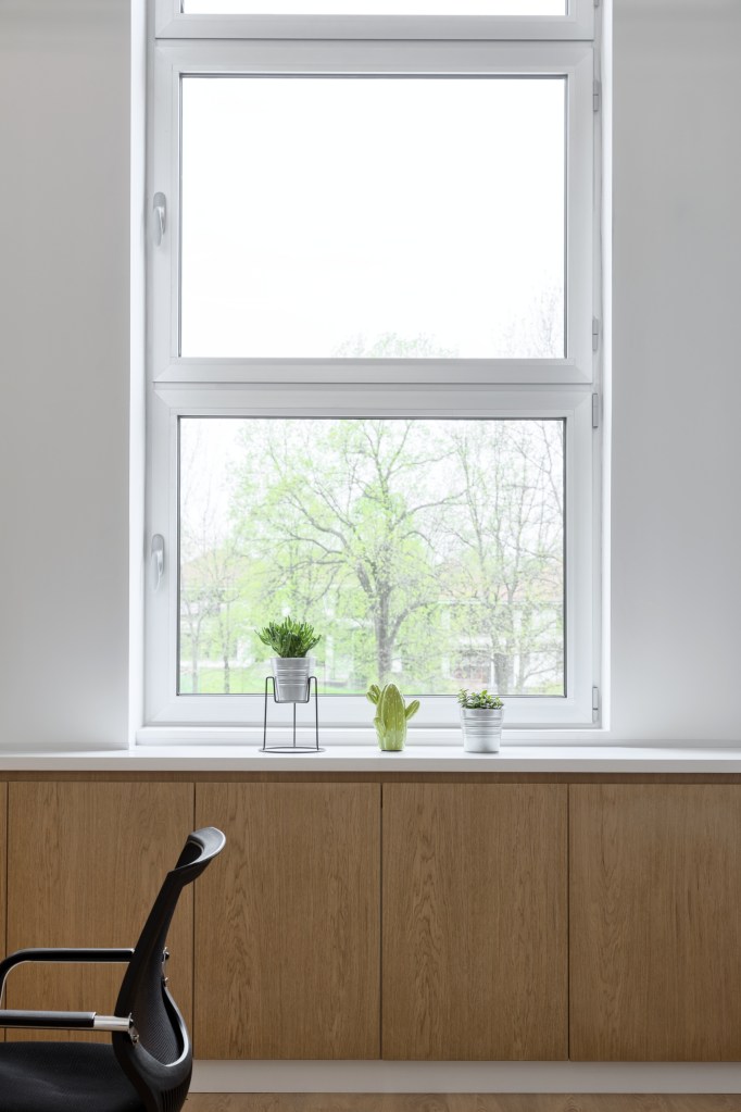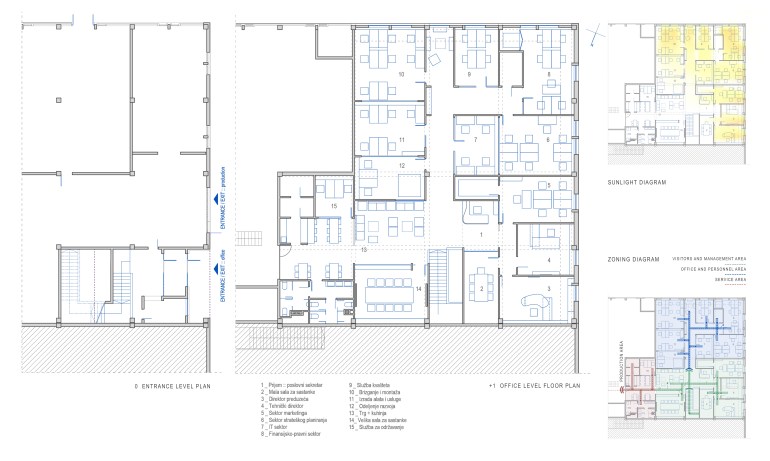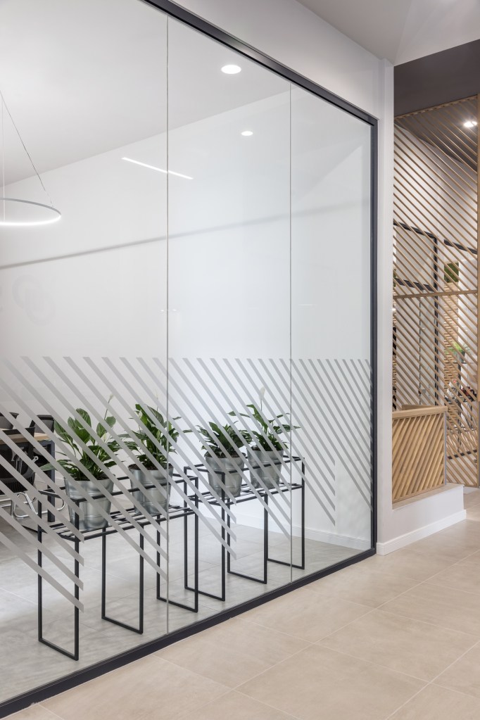 The specificity of the projects is that it is an adaptive reuse of the industrial building with a higher ceiling than it would be usual for an office space, which also allowed deeper penetration of natural light into space. With the alternating positions of the glass and wall partitions, we opened the views that also penetrate through different layers of spaces and creating a pleasant space with simple but effective materials while we kept the budget at a minimum.