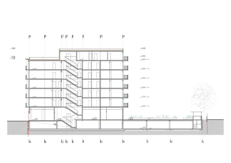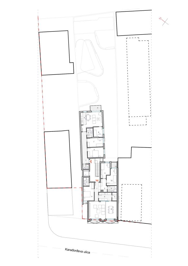 The residential building in Karađorđeva Street in Kragujevac, Serbia has been designed under the conditions of specific limitations – the first one is that the plot is very narrow and long and the second is that the building has been designed and built in period of time in which the character of Karađorđeva Street is being strongly transformed following the current Urban plan, with intensive but scattered individual construction of new multi-storey buildings.